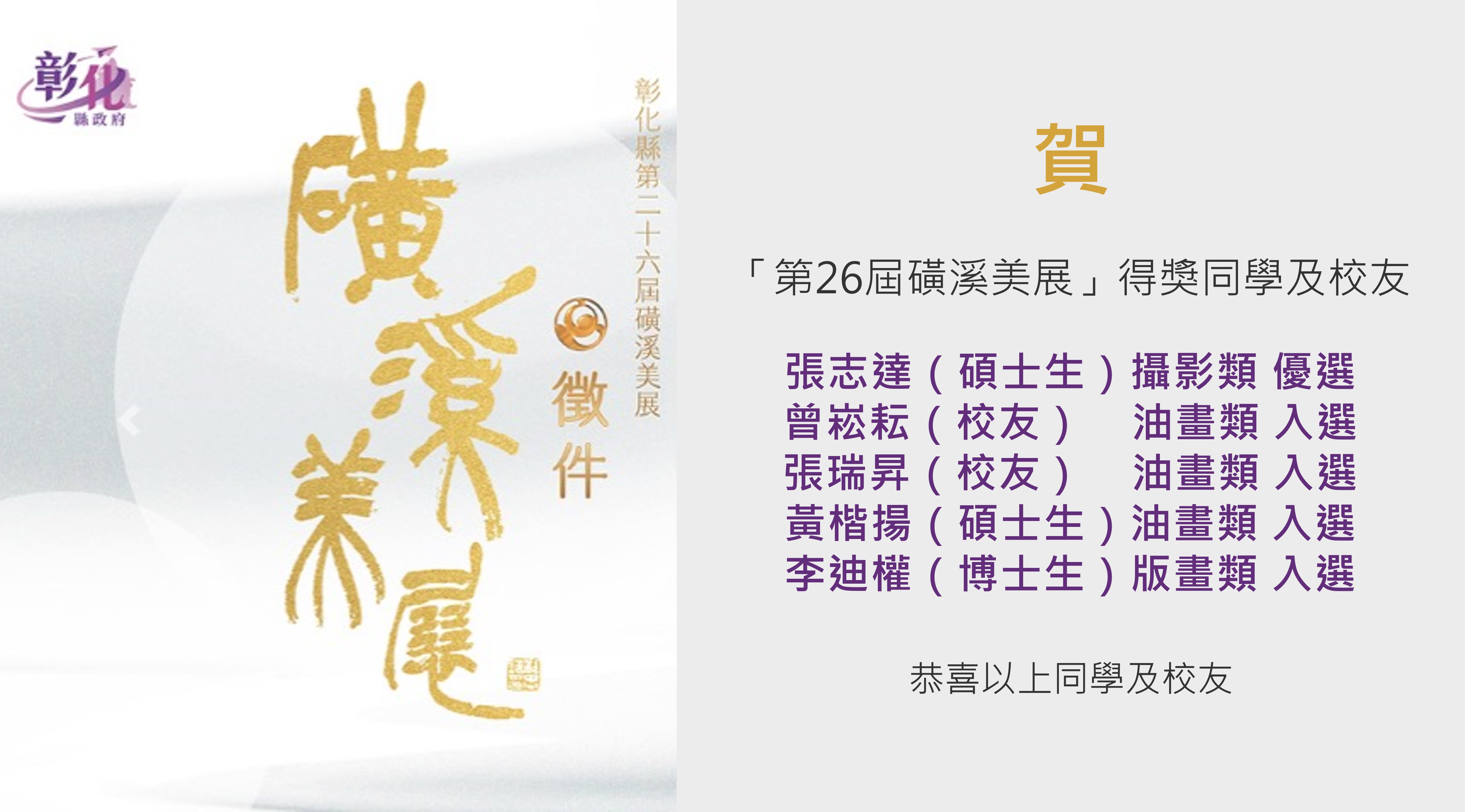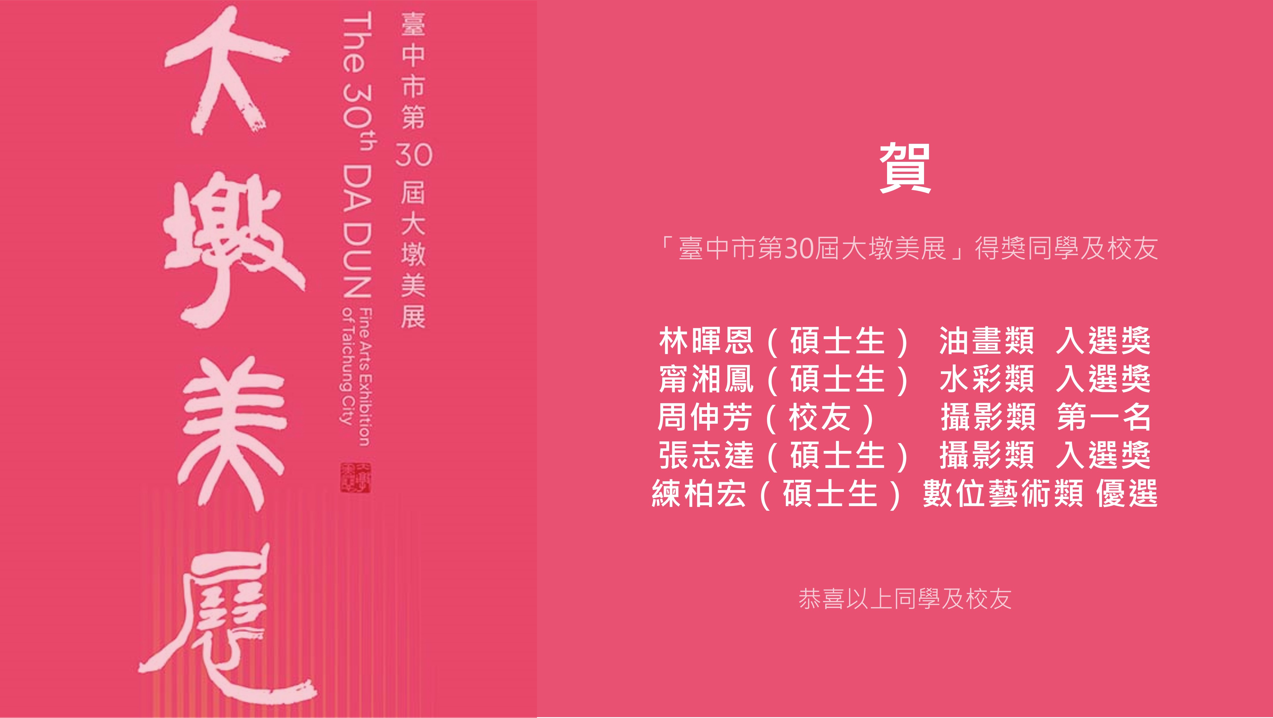 賀 「臺中市第30屆大墩美展」得獎同學及校友