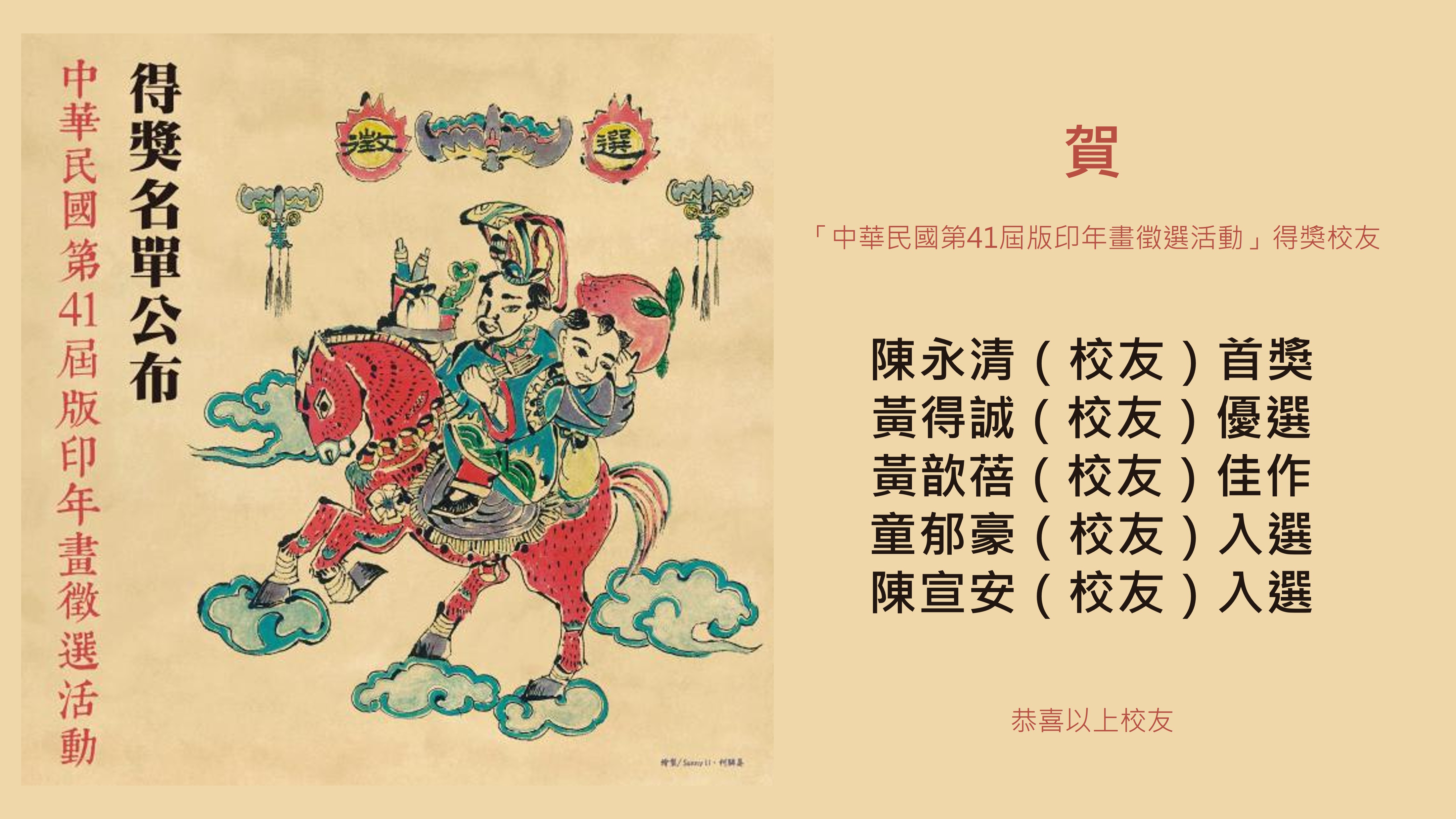 賀 「中華民國第41屆版印年畫徵選活動」得獎校友