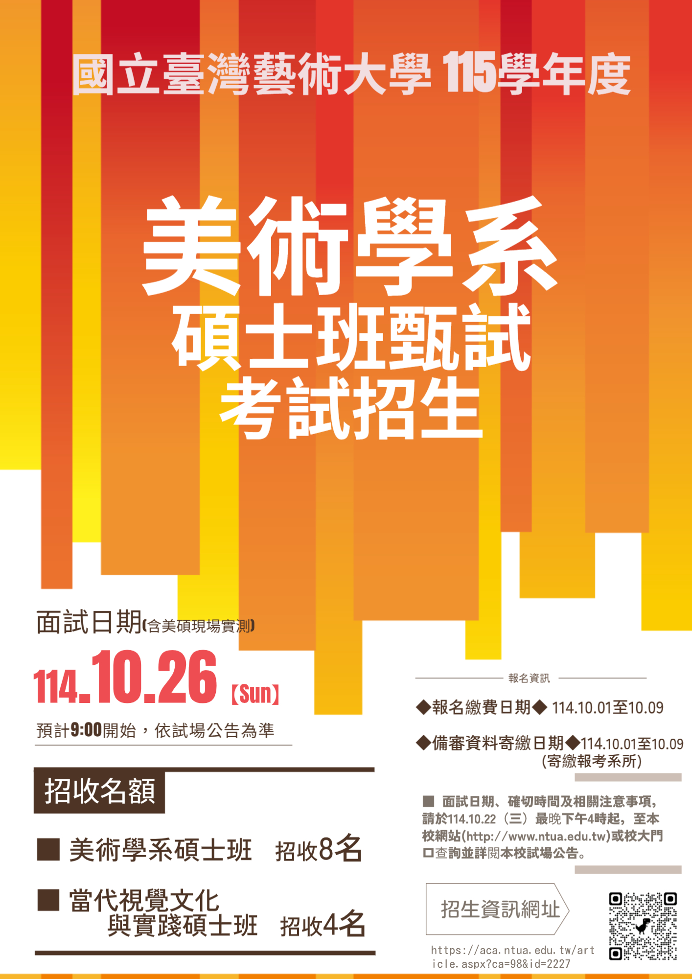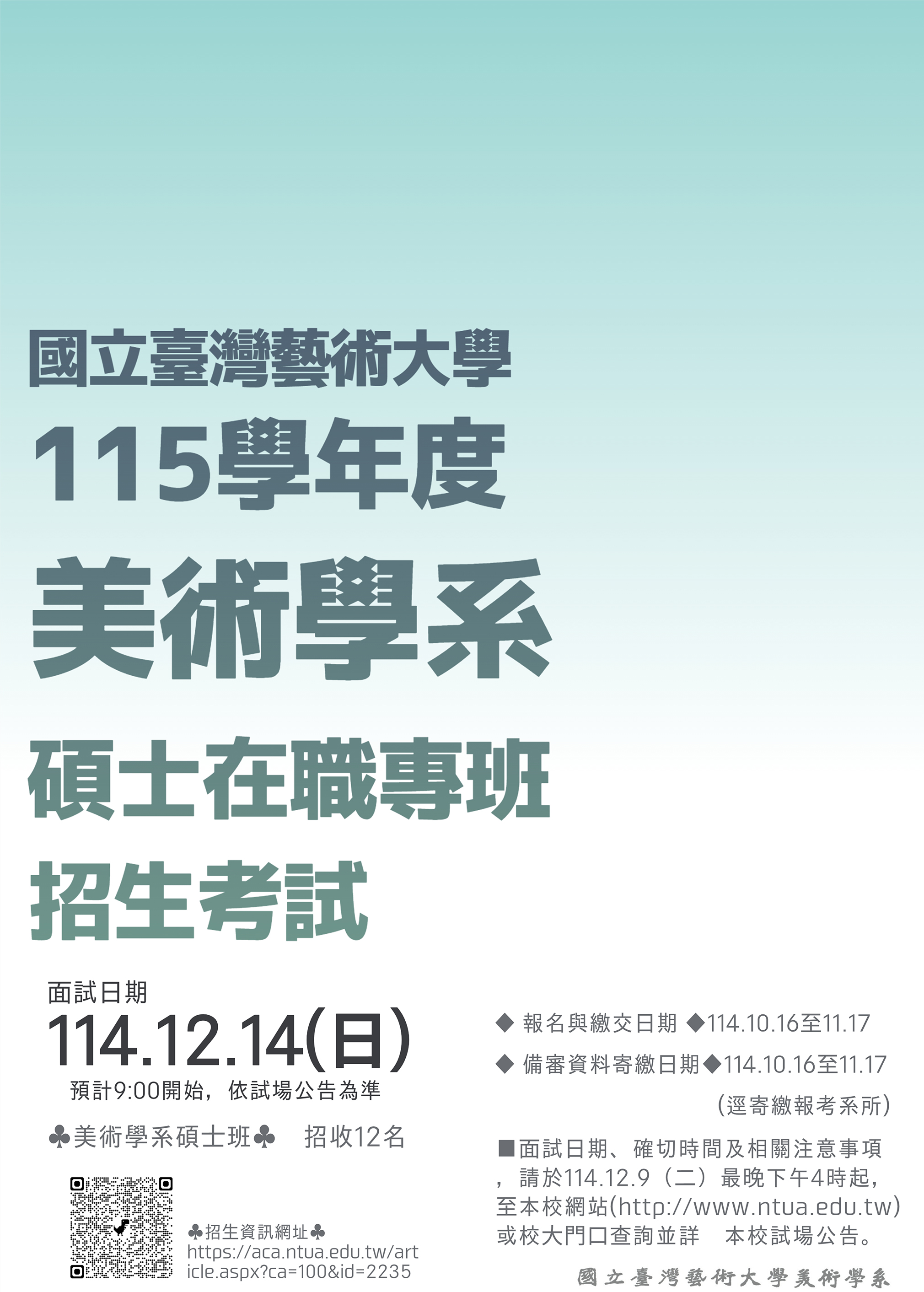 ppp一年一度的碩博班招生考試又來到嚕~~~~歡迎有興趣的同學手刀衝刺、踴躍報名喔!!!/p p◆報名日期:112.12.07(2:00pm)至12.21(4:30pm)◆報名費繳交日期:112.12.07至12.22◆報名資料、備審資料寄繳日期:112.12.07至12.22◆一律採網路報名/p/p/p