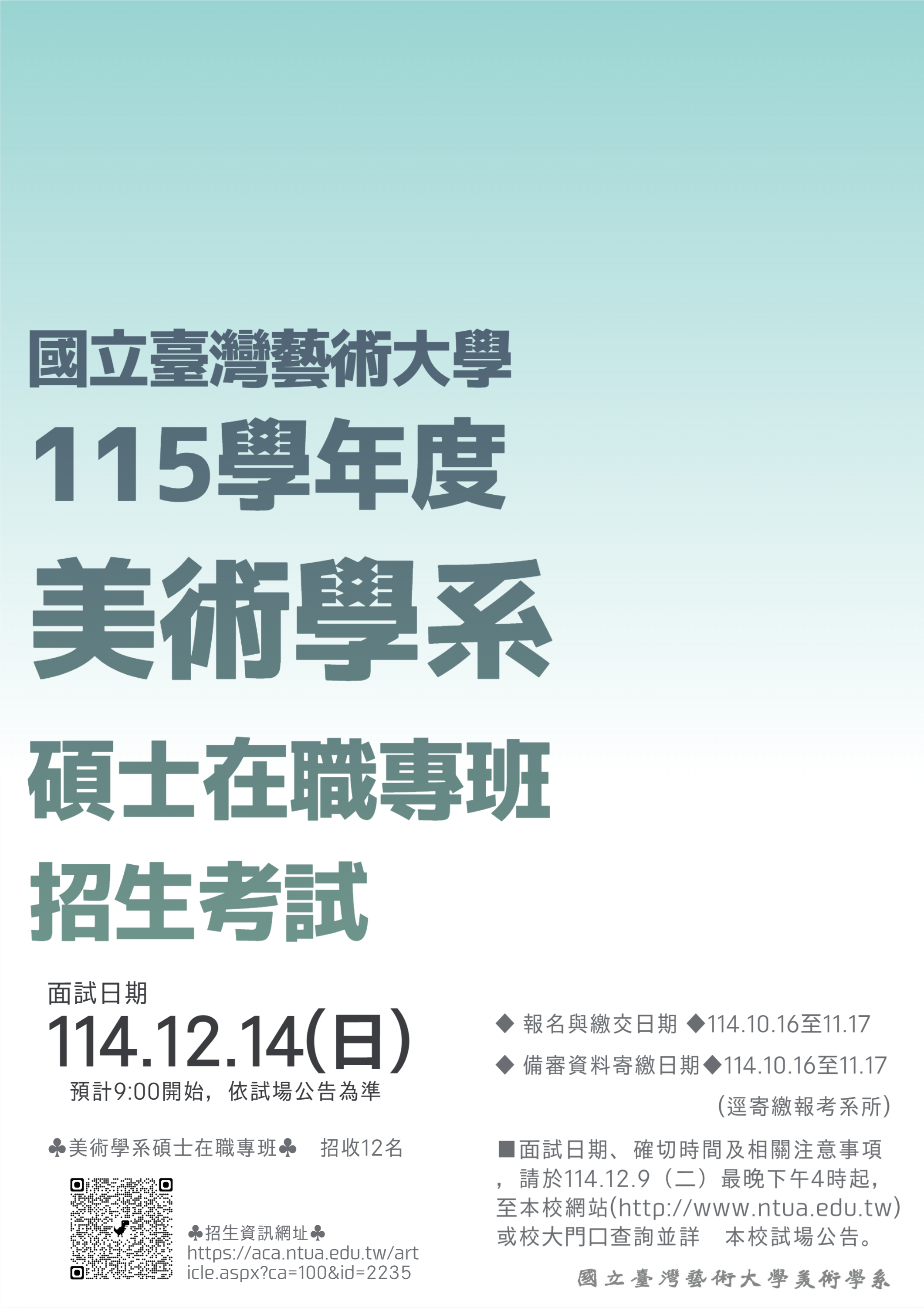 115學年度國立臺灣藝術大學 美術學系碩士在職專班考試招生