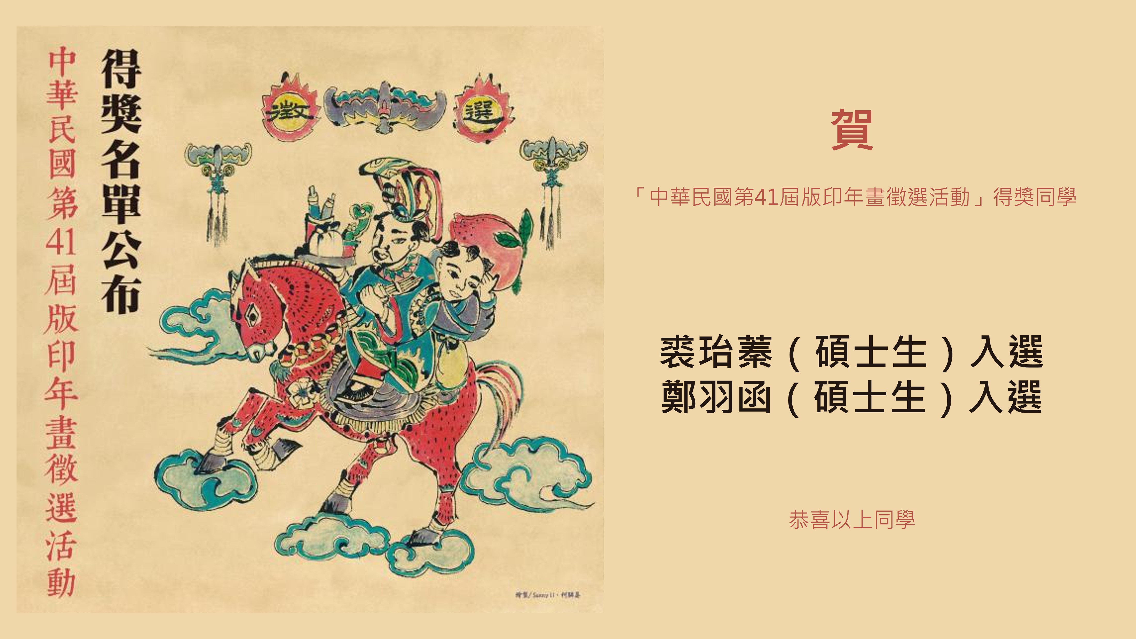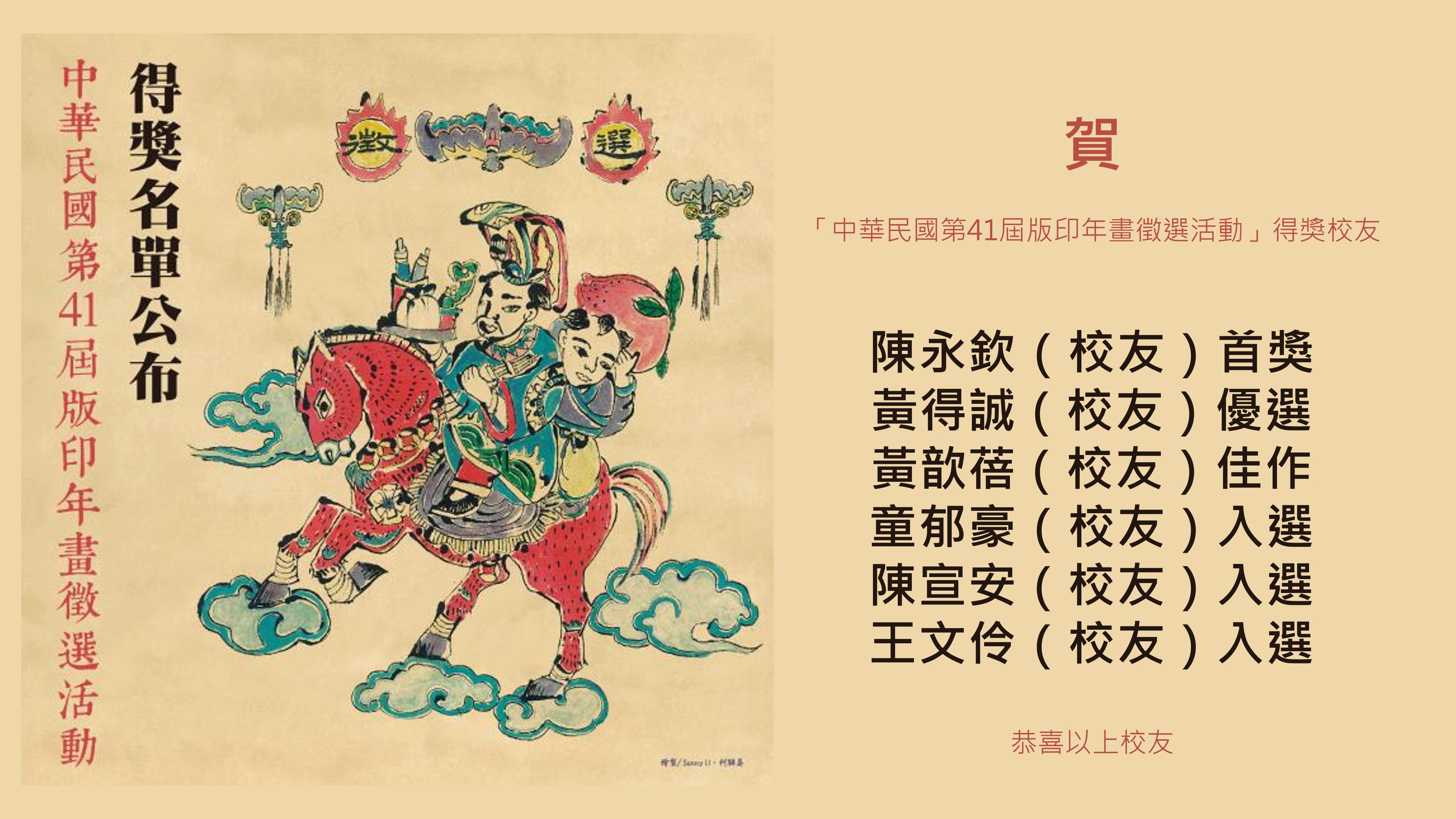 賀 「中華民國第41屆版印年畫徵選活動」得獎校友